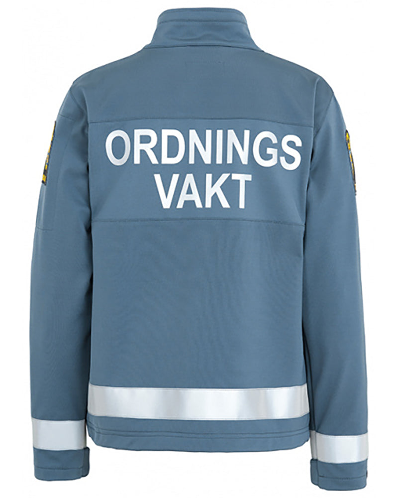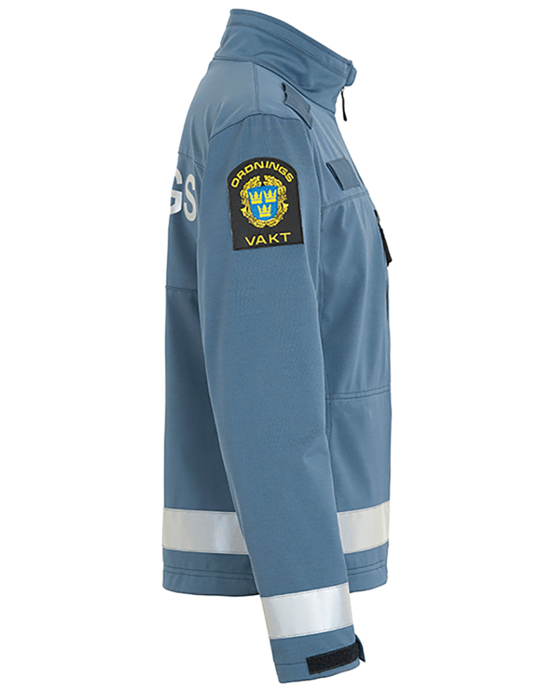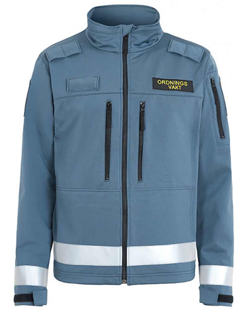 Jackan har två bröstfickor och två innerfickor, samt hållare för namnbricka och dubbla monofonhållare.