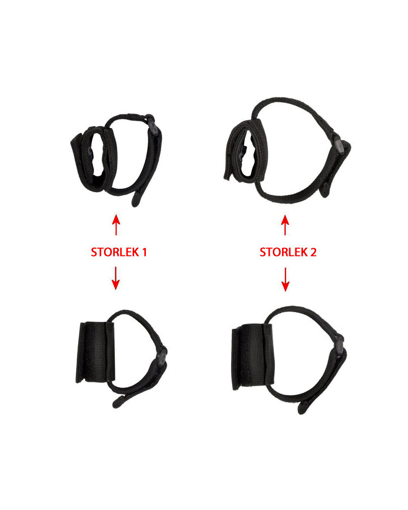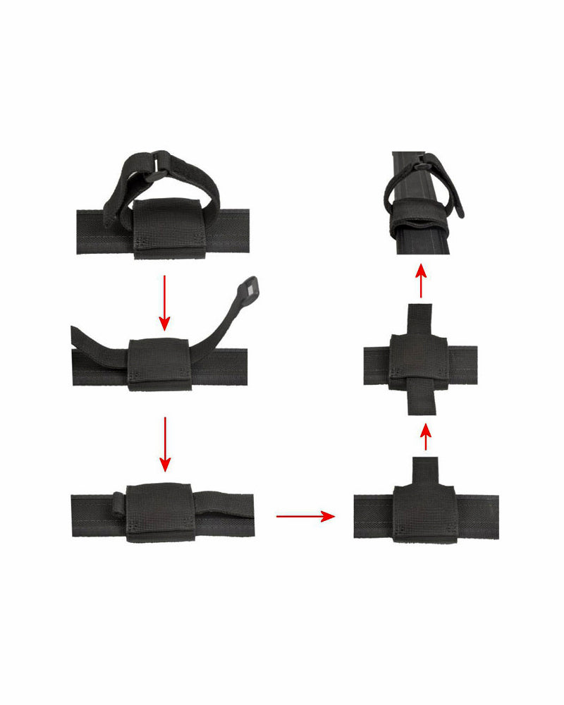 Infästningen har en kardborreförslutning och kan fixeras eller avlägsnas från bältet utan att man behöver ta av bältet.