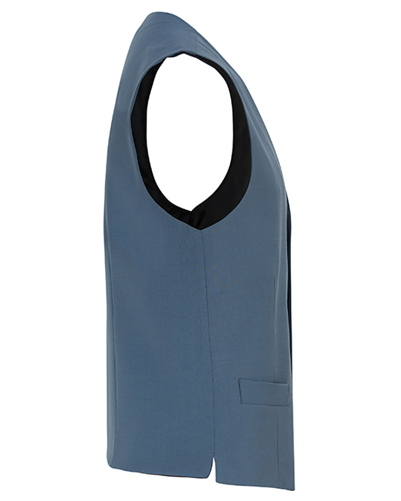 Enkelknäppt väst med två sidfickor. För att uppnå bästa komfort är västen sydd i stretchmaterial.