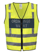 En enkel , funktionell och prisvärd varselväst för Ordningsvakter som följer Rikspolisstyrelsens föreskrifter (FAP). EN 471 Klass 2.