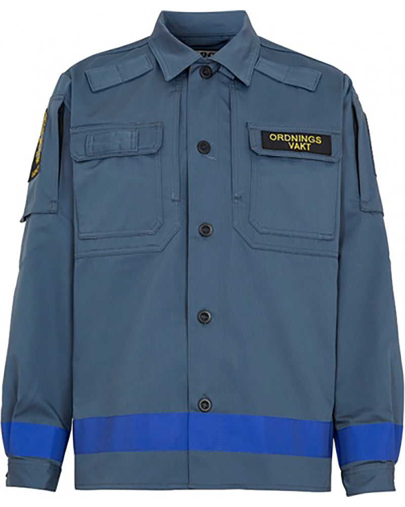Ett OV-emblem på vardera ärm samt funktionsbeteckning på bröstet