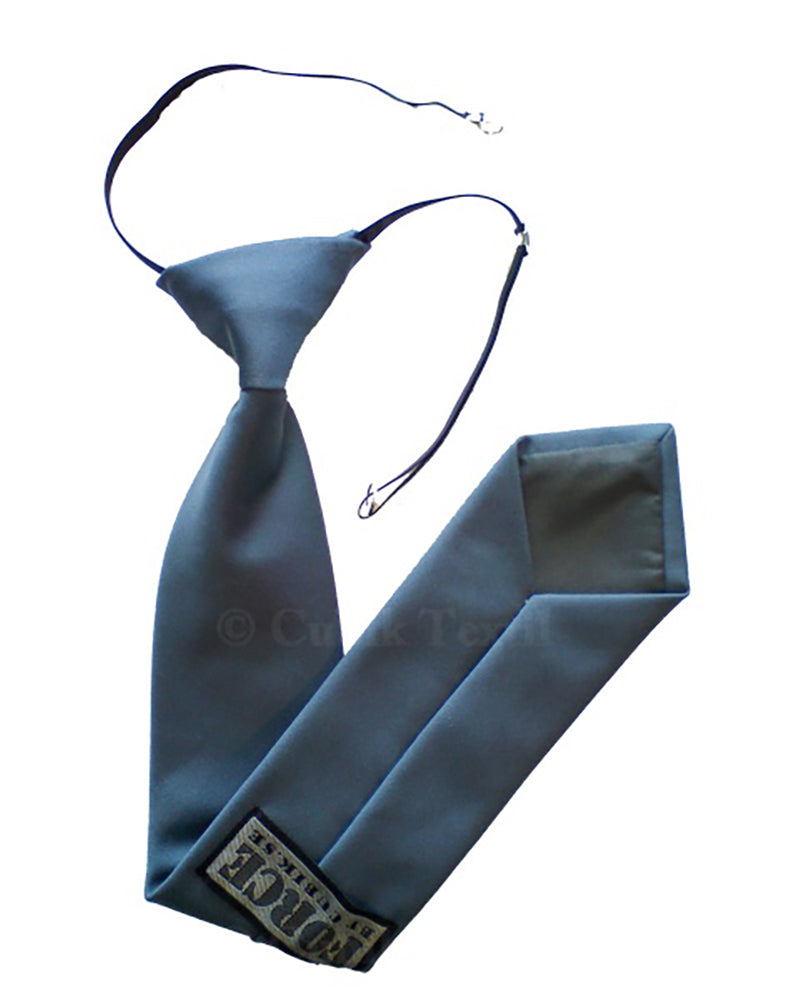 Färdigknuten säkerhetsslips med resår och metallknäppe.
