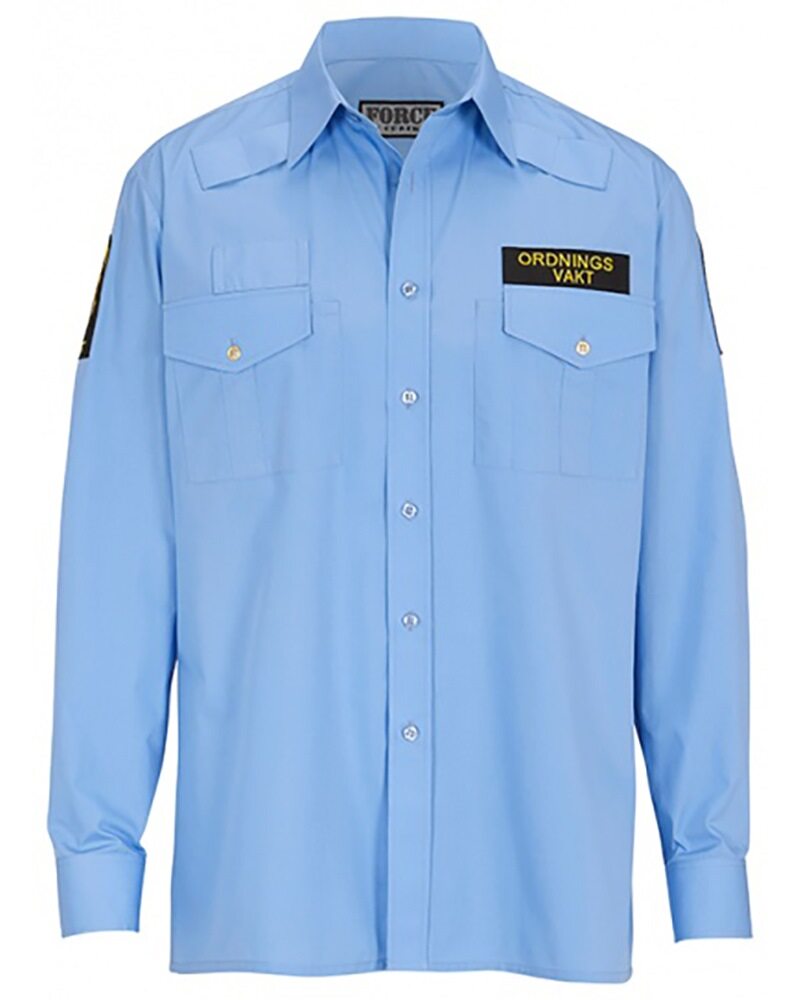 Herrskjorta med dubbla bröstfickor med lock, samt med hållare för namnbricka och dubbla monofonhållare.