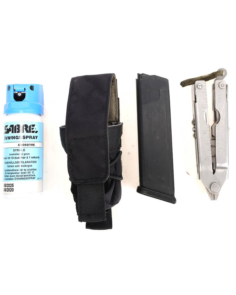 Locket stängs med kardborre och kan vikas in i fickan och fästas för snabbare åtkomst vid behov.
